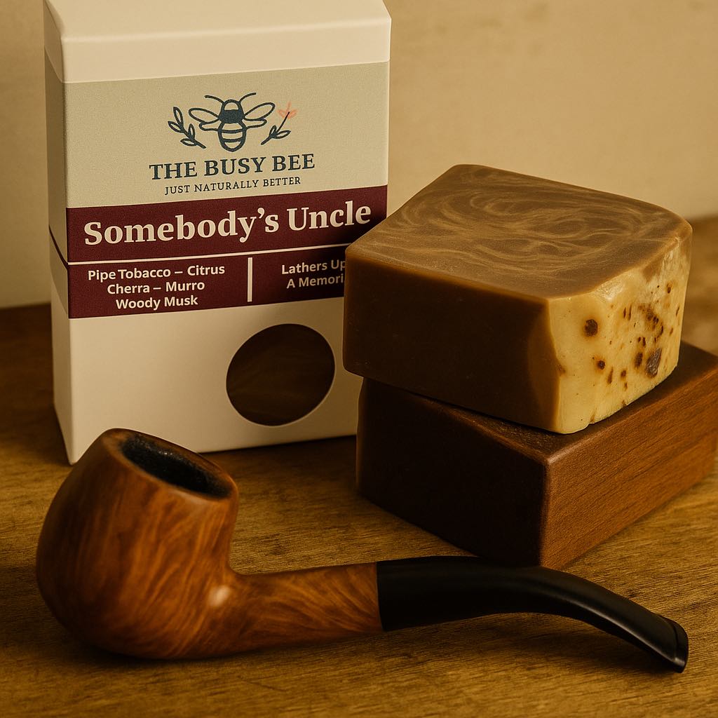 A rugged blend of pipe tobacco, citrus, cherry, and woody musk—this bar smells like stories told in low light and laughter that lingers. Infused with skin-loving oils and gentle exfoliants, Somebody’s Uncle is a rich, nostalgic cleanse that wraps you in warmth and wisdom. Comforting, masculine, and just a little mysterious.